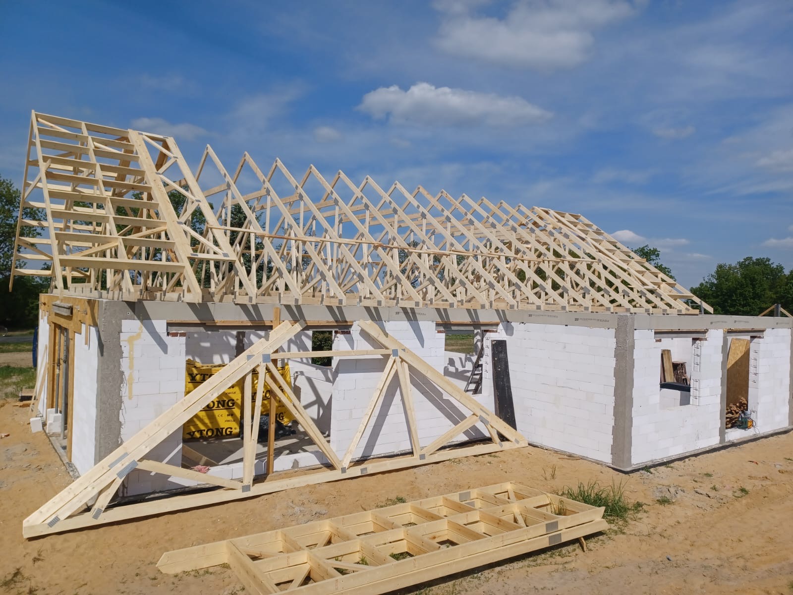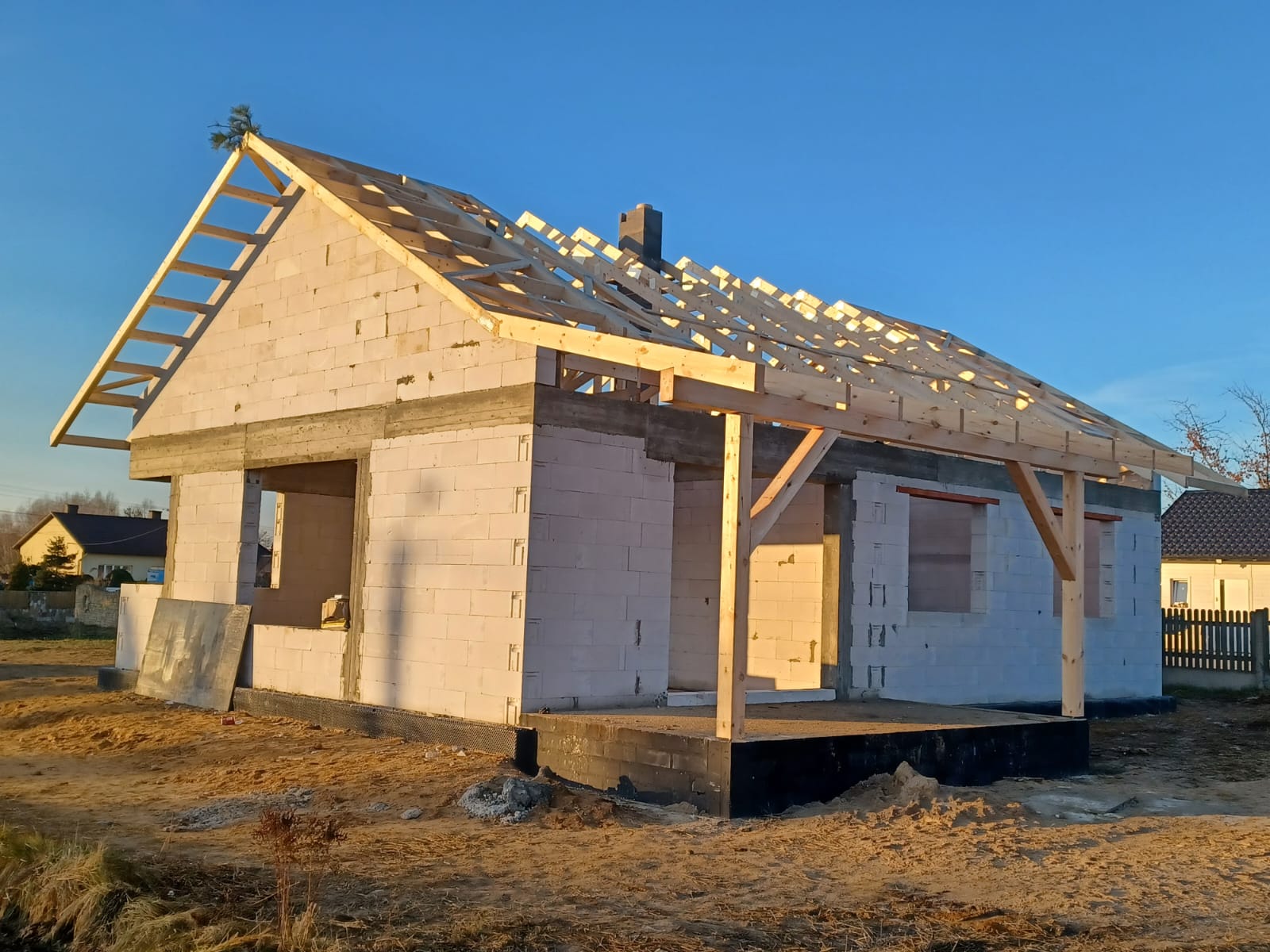 Drewno w moim otoczeniu jest od zawsze, to za sprawą mojego Dziadka i Ojca, obaj zaszczepili we mnie szacunek do drewna. Dziadek pracował jako drwal, Ojciec prowadził warsztat stolarski. Od najmłodszych lat, po szkole chodziłem do warsztatu obserwować jak powstają schody, drzwi, okna i boazeria. W 2016 roku założyłem własną działalność gospodarczą. Głównym profilem firmy jest wznoszenie obiektów drewnianych w konstrukcji szkieletowej. Wiedzę potrzebną zdobywaliśmy na licznych szkoleniach organizowanych przez prekursorów budownictwa szkieletowego w Polsce. Praktyka przyszła z czasem pod okiem wykwalifikowanych kierowników budów, oraz praktyków którzy budowali domy szkieletowe w kraju oraz poza granicami. W roku 2019 postanowiłem rozszerzyć zakres usług o produkcję wiązarów dachowych. To właśnie wiązary stały się głównym produktem naszej firmy. Zalety zostały opisane w zakładce „oferta”. Od 2021 roku jesteśmy również producentem certyfikowanego drewna konstrukcyjnego oznaczonego znakiem CE. Możemy poszczycić się certyfikatami potwierdzającymi jakość naszych produktów. Posiadamy certyfikaty na drewno konstrukcyjne oraz konstrukcje drewniane łączone płytkami kolczastymi.